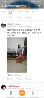 空竹教练,悉心指导,技术过关;队员积极投入,刻苦训练,线上参赛,超越自我,勇争第一!家长参与,耐心录视频,功不可没!学校支持,科学管理,0感染。