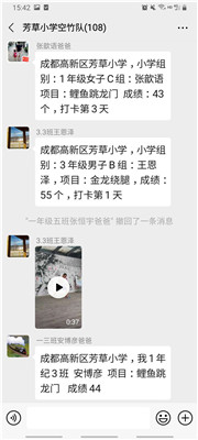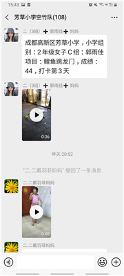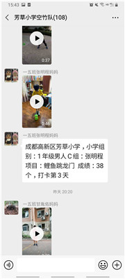 2020年1月,突如其来的一场新冠肺炎疫情,阻断了成都高新区芳草小学空竹队员的正常交流,却没有阻断孩子们对空竹运动的热爱和追捧。在校园里,人与人间隔一米,孩子们认真地锻炼,在家里,家长耐心地为孩子们录制参赛的视频,在成都市空竹协会公众号上,孩子们每天坚持打卡,上传比赛视频,连续打卡多达30多天,暑期还将继续……