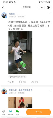 通过这样的线上比赛,线下训练,学生的成绩突飞猛进。以一年级邹韵涵小朋友为例,从最开始一个都不会,到第一天打卡参赛做了12个,再到第二十一天打卡参赛的成绩已经是75个,可谓神速!