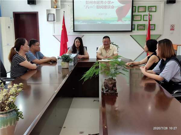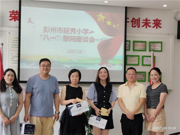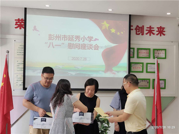 为进一步营造“军爱民、民拥军、军民一家亲”的良好社会氛围,7月27日,彭州市延秀小学在总部小会议室开展了拥军优属慰问活动。学校工会主席肖成云、两名转业军人、两名军属和相关领导人员参加本次活动。