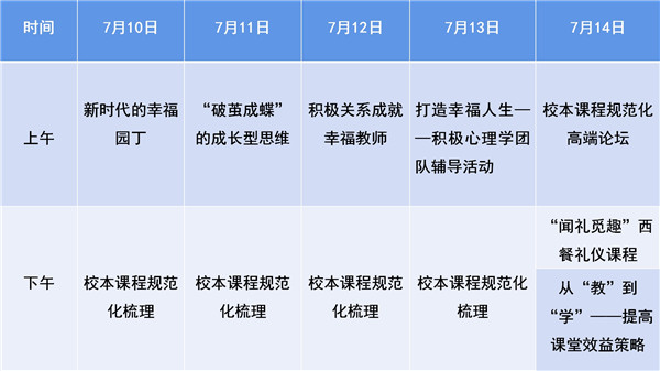 7月10日至7月14日,成都天府新区第一小学(以下简称:天府一小)“幸福大雅堂——积极心理学教师培训”暨“校本课程规范化梳理”同时拉开帷幕,呈双线并进之势,与博雅教师一起“乘风破浪”,碰撞出思维的智慧火花。