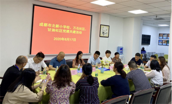 为推进“学校-社区”党建共同体工作的顺利开展,8月17日下午,成都市实验小学北新校区、万石社区、甘油社区党建共建签约仪式在万石社群服务中心会议室举行,相关单位主要负责人、党员代表出席会议。同时,本次活动开展线上直播,支部全体党员线上实时参与学习。