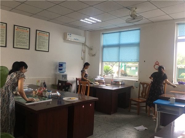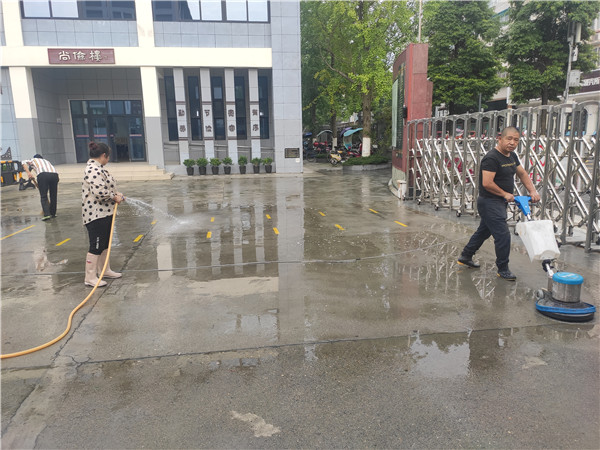三、全体行政提前到校,规范资料准备和组卷建档工作。全面开展“搬家式”校园卫生大扫除。对校园内的卫生死角、过道楼梯、食堂、操场、卫生间、教室以及各办公室卫生进行彻底清理和整治。在学府校园内,随处可见老师、学生及部分家长的身影,他们都积极投身到学校创卫工作中,对校园环境卫生、教室里的课桌椅、黑板、墙角、工具柜等进行细致的清理;保洁工人对墙角蜘蛛网、积尘、地面等进行彻底的清理……