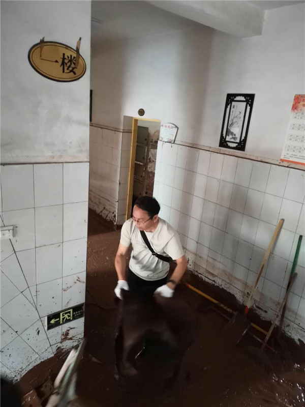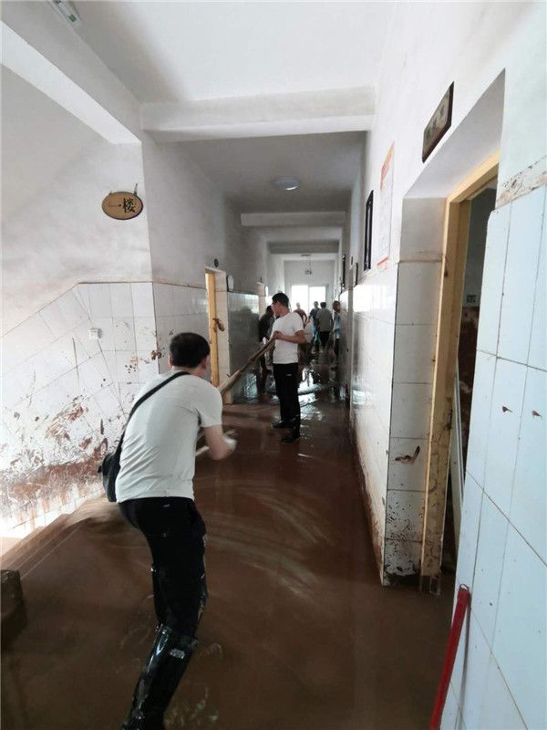 面对淤泥遍地,一片狼藉的校园,煎茶中学白川书记深入一线参与清淤,志愿者们分工有序,有条不紊,不顾淤泥的腐臭,垃圾的脏乱,齐心协力,干劲十足。汗水浸湿衣衫,泥浆溅满全身,经过努力,学校已经清理了大部分淤泥。