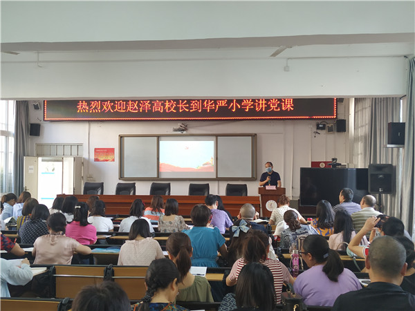 赵泽高同志从青白江建区60周年的所见、所闻、所感等多方面多角度、生动地为华严小学全体教师上了一场别面生开的党课,引起了党员们的共鸣和对祖国取得伟大成就的自豪感。赵泽高同志从新中国成立70周年的历史启示讲到“生态文明建设”“脱贫攻坚”的卓越成就,再到青白江建区60周年的发展,详细讲解了青白江建区60周年教育系统的发展变化。