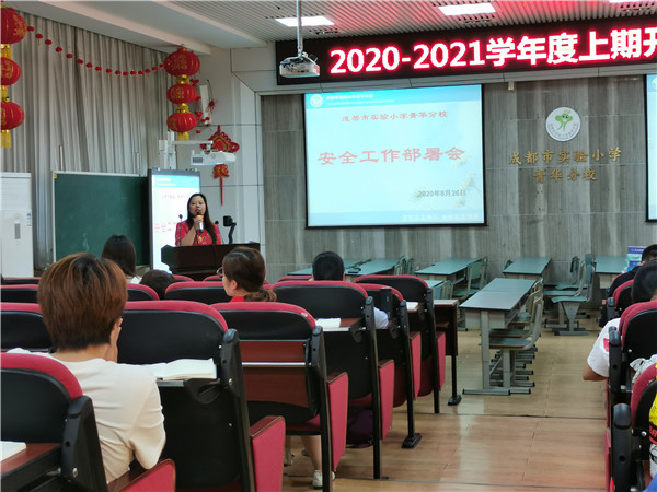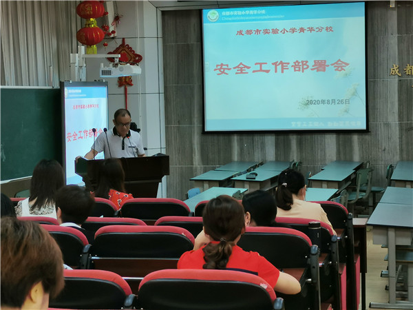 2020年8月26日上午,成都市实验小学青华分校(以下简称:实小青华)在一楼学术厅召开新学期教师工作会议。学校领导就新学期相关工作做了部署和安排,全体教师参加了此次会议。