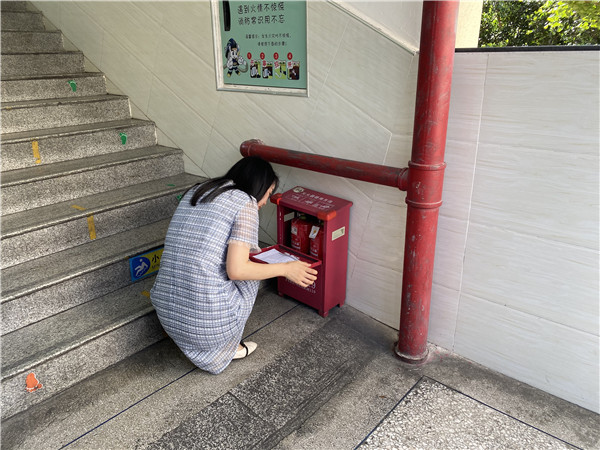 安全检查小组成员首先对库房存放的消毒液、酒精、书籍等备用物品的存放情况进行了检查,接着对办公室、教室等地的消毒和通风情况进行了检查。通过检查发现学校有些部位的安全标识存在脱落现象,安全管理员周鹏老师做好了记录,并立即进行整改,力求做到不留一处死角,不漏一个隐患。