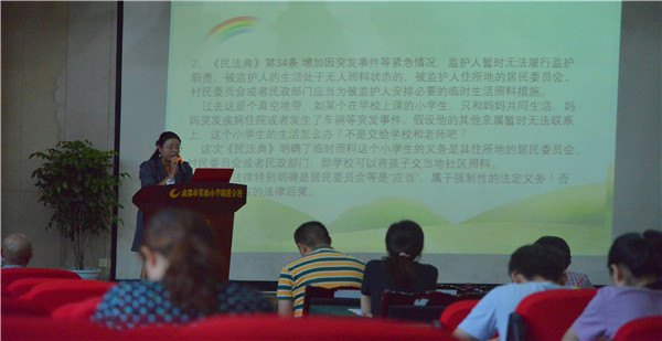 在本次讲座中,曾顺兰律师给老师们讲解了《民典法》的重要变化和校园安全事故责任及预防两个方面内容。