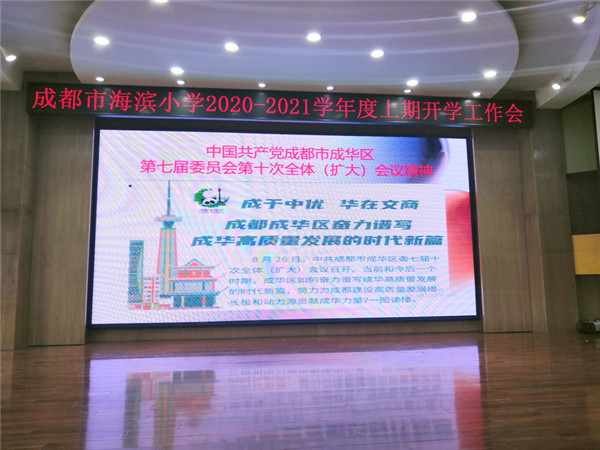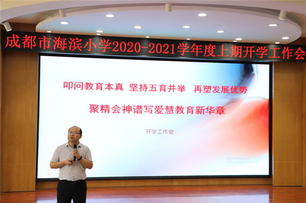 2020年8月29日,成都市海滨小学2020年秋季开学工作会在学术大厅举行,本次会议的重要内容是传达学习成华区委七届十次全体(扩大)会议精神。