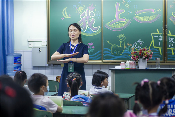 在课堂上,老师们通过生动的情境创设和有趣的活动体验,教孩子们学会举手、学会倾听、学会发言、学会坐姿端正……训练过程中,孩子们小手平放、小背直挺、小耳直立,短短半个小时的体验,孩子们的动作已经与老师的手势和口令融为了一体。