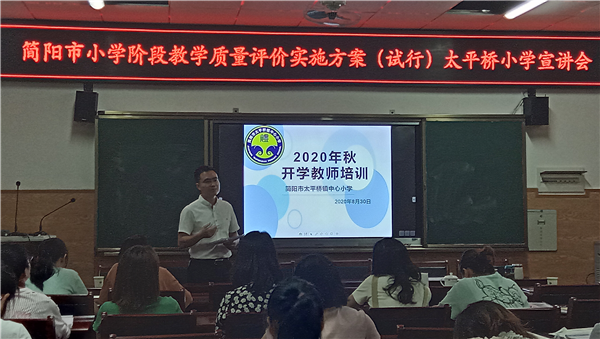 为进一步加强教师队伍建设,促进学校教师专业发展,提高课堂教学实效,助推学校精细化管理,简阳市太平桥镇中心小学于8月30日下午召开了主题为“培训促成长 扬帆再启航”的秋季开学教师培训会。市教研室小学教研规划办主任、小学语文教研员刘凌云,小学室主任、小学科学教研员陈小应,太平桥镇中心小学全体教师等共计50余人参加此次活动。