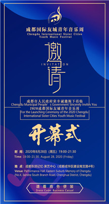 以音乐之名,交天下朋友。在这全世界仍然在与新冠疫情战斗的特殊时期,由成都市人民政府主办的2020成都国际友城青年音乐周正式拉开帷幕,开幕式落地在东郊记忆演艺中心。以“音乐连线叙友情,世界同心抗疫情”为主题,让世界各地的艺术家们能够跨越国界亲密交流。