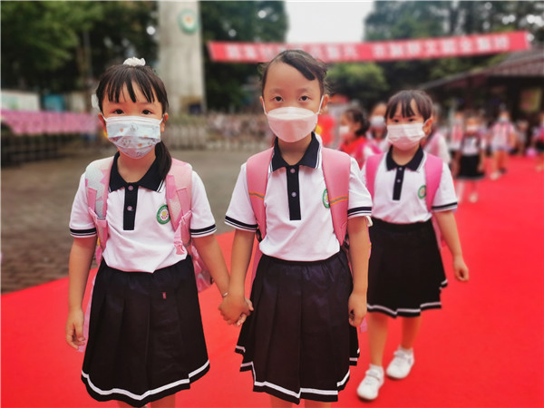 9月1日,都江堰市顶新新建小学举行了隆重的入学仪式,孩子们踏着欢快的步伐回到校园。