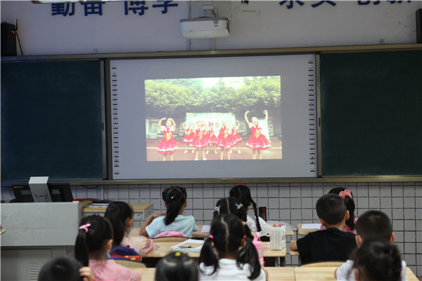 接着,刚刚加入桐梓林小学大家庭的新老师登场,她们为孩子们带来有意思的节目,特别是英语刘老师的动画配音让大家耳目一新。然后,全校师生迎接纯真可爱的一年级新生,并和六年级同学开展班级结对。一年级的陈煋垚小朋友作代表发言,小朋友声音稚嫩,但非常认真,可爱的样子获得一阵掌声。三年级二班的同学们特别能干,在疫情期间坚持线上排练,为大家呈现出精彩的舞蹈《国家》。她们将开学典礼的欢乐气氛推向了高潮。