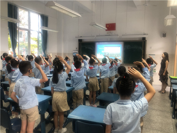 在开学典礼中,孩子们非常兴奋地了解了即将在家乡成都召开的世界大学生运动会,大家憧憬着盛会的到来,同时也欣赏了全校师生的共同杰作——航拍双林御风大课间活动的壮观场面。