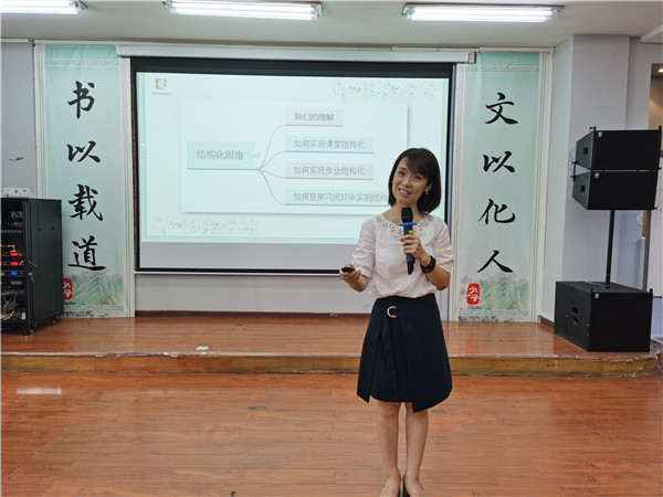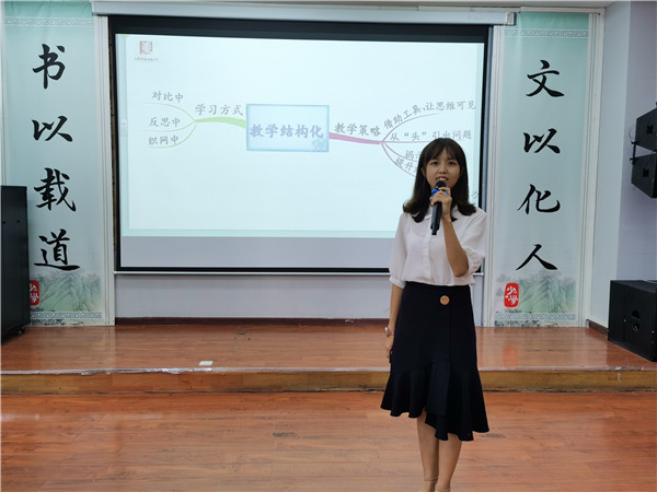 老师们分别从理解结构化、实现课堂结构化、实现作业结构化、在学习闭环中实现结构化等四个层面进行了“以结构化思维促进学生深度学习”的主题汇报。