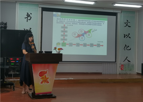 9月2日,青羊区教科院开展了五年级数学教研活动。教研员刘艳老师就五年级上册教材进行了深度解读,刘艳老师就教科院正在研究和推行的“结构化思维”进行介绍。随后,成都市东城根街小学薛倩倩、李燕、郑晓梅、赵珣和徐静几位老师代表东小数学组做了《以结构化思维促进学生深度学习》专题汇报。
