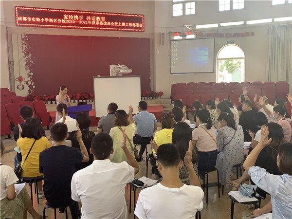 为架好学校教育、家庭教育、社会教育的桥梁,构建起学校、家庭、社会三位一体的教育网络,实现相互理解、相互配合、共同关注、共谋发展、共同育人的目标,2020年9月2日下午,由校级家委会会长——五年级何佳熙爸爸主持的成都市实验小学西区分校(以下简称:实小西区)2020-2021学年度家长委员会换届选举大会在学术厅举行,学校苗校长、家教中心主任郭主任等相关领导及全体校级家长委员会成员参加了会议。