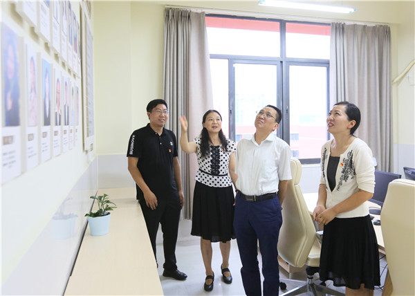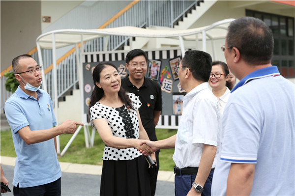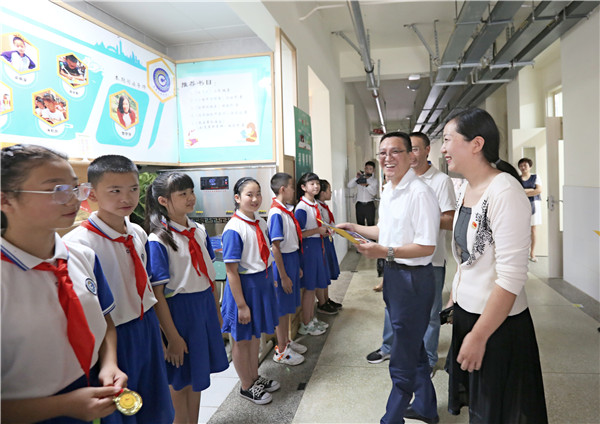 2020年9月3日,四川省纪委监委驻教育厅纪检监察组组长、省教育厅党组成员李鸿才,省教育厅党建处处长贾贵洲,驻厅纪检监察组干部廖永红;成都市委教育纪工委书记、党组成员、纪检组长何明宇,市教育局党建处处长王鹏,驻市教育局纪检监察组干部罗静;龙泉驿区纪委监委驻龙泉驿区教育局纪检监察组组长吴永宁同志,成都市经开区(龙泉驿区)教育局党组成员、局机关党委书记张斌同志,成都市经开区(龙泉驿区)教育局办公室主任朱素清同志;成都大学师范学院党委书记肖红、博士佘勇一行来到成都大学附属小学(以下简称:成大附小)进行开学工作调研,为龙泉驿区优秀教师代表送上诚挚的关怀和节日的祝福。