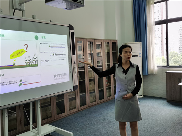 决赛包含“课例研究分享”“现场回答专家提问”两个部分。“课题研究分享”通过15分钟的视频进行展示,在展示内容的设计过程中,老师们从激烈讨论到修订方案,从初见雏形到日益完善,每位老师都使出浑身解数,通过精彩的语言、生动的画面、有趣的情境,以及信息技术手段的灵活运用,把整个案例的教学特色展现得淋漓尽致。