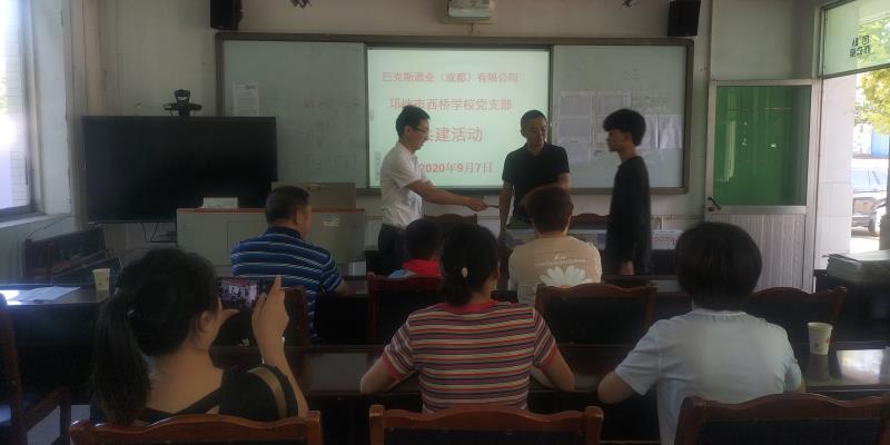 2020年9月7日,巴克斯酒业(成都)有限公司与邛崃市西桥九年制学校党支部开展了共建活动,对贫困生捐资助学。