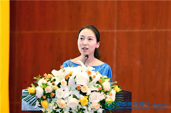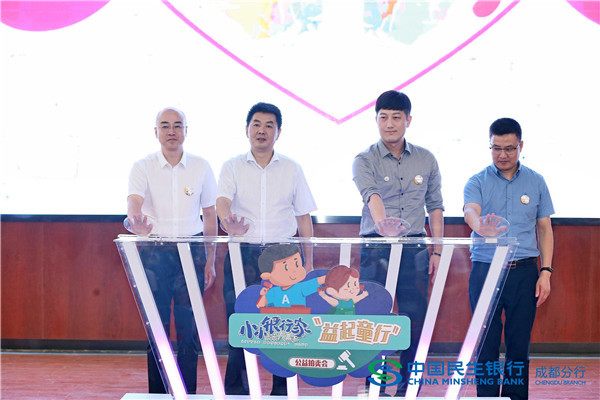 郭局长、程校长、钟主任、唐行长在屏幕上按下手印,一个个五颜六色的手印在大屏幕上闪烁着,中国民生银行、中国儿童少年基金会益起童行公益联名卡正式发布。民生银行成都分行项目负责人介绍,“益起童行”是由中国民生银行和中国儿童少年基金会共同正式发起的家庭公益项目,该项目倡导家庭公益,旨在通过公益传递爱心,在父母的启迪下培养少儿对世界的认知感,陪伴孩子成长,开拓孩子的眼界,加强孩子的沟通能力,提高综合素养。