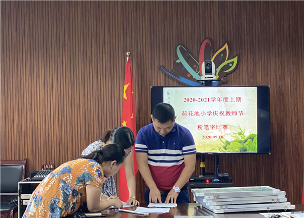在9月10日教师节来临之际,为弘扬中华传统,推动校园文化建设,营造书香校园氛围,培养和提高教师教学的基本素养,成都市荷花池小学校工会主办的教职工粉笔字比赛在学校三楼会议室举行。