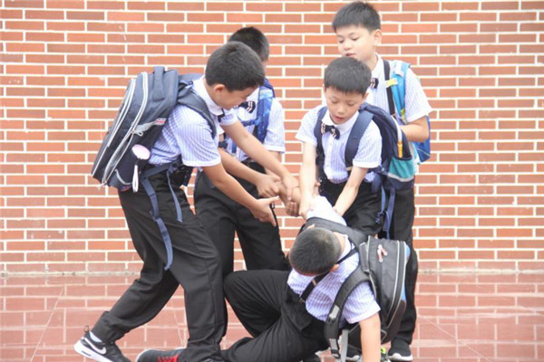 9月14日,在成都市实验小学西区分校(以下简称:实小西区)的操场上,四年级一班的孩子们带来了一场生动的“法制教育进校园”表演。