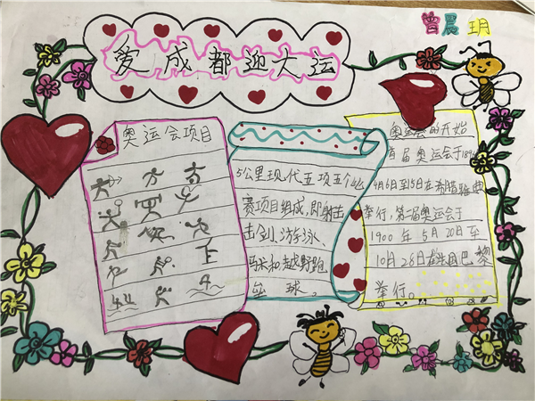 深入成都,为大运会助力,孩子们也精心制作了手抄报。