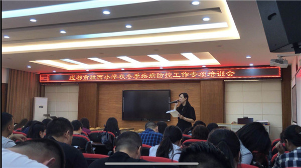 为进一步加强学校传染病防控工作,有效预防和控制传染病在学校暴发、流行,保障学生健康成长,维护学校正常教学秩序。9月15日下午,成都市胜西小学召开全体教师秋冬季疾病防控工作专项培训会,此次培训工作会议由副校长余梦洁主讲。