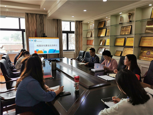 研讨会上,王总监将重新修改的校园文化建设物化效果图,如徽标、风雨长廊、宣传栏、图书馆等逐一进行呈现和解说。马总经理则从校园文化建设精神内涵,诸如水木文化符号及其作用、水木文化发展思路创意表达方式、教育文化理念、校风、校训等方面再次和学校进行进一步交流。