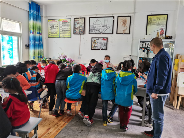 为了更加深入了解巴塘县列衣中心校孩子们的学习情况,在列衣小学校长常磊的带领下,老师们参观了列衣小学的各年级教室、美术室、音乐舞蹈室、实验室及由彭小捐资改建的食堂。