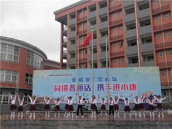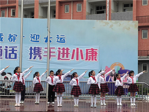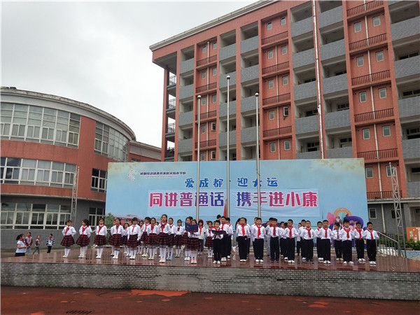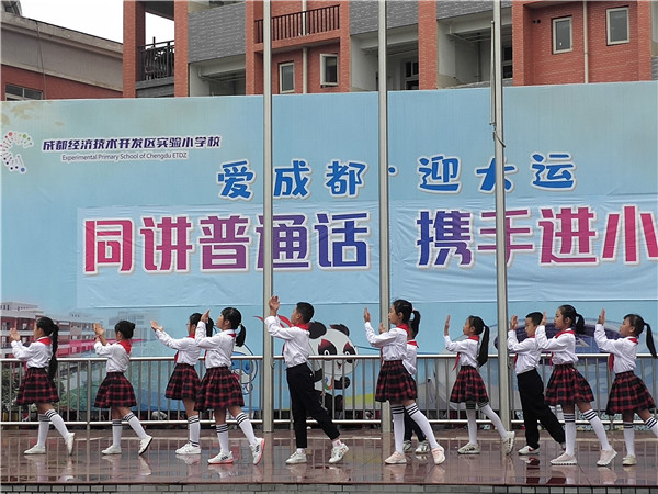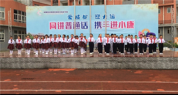 普通话是以北京语音为标准音,以北方话为基础方言的语言,是现代汉民族的共同语,是中华民族各族人民通用的语言。日前,成都市经济技术开发区实验小学校(以下简称:经开实小)三九中队带来了以“迎大运盛会,展汉语魅力”为主题的升旗仪式,呼吁全校师生“写好规范字,讲好普通话”。