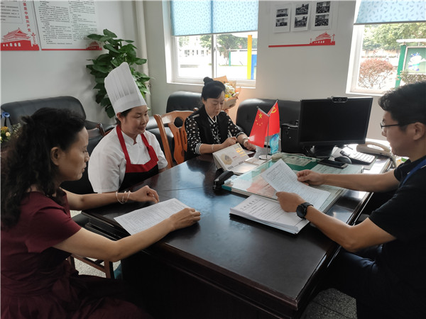 学府小学校长王耀宗就新学期疫情防控、食堂从业人员面对面谈心、学校课题研讨、近期开展的学校传统文化展示、教师师徒结对、班主任讲教育故事、学生科技创新大赛、大队干部竞选等系列工作开展情况进行汇报。学府小学副校级督学余英、张柱贤汇报了食品安全工作的自查情况,总务处主任詹庆多就学生资助工作的管理、实施情况进行介绍。随后,艾春祥督学巡视了校园,深入食堂、餐厅,现场督查食品安全工作,对照检查内容,详细查阅了食品安全管理资料和学生资助档案资料,实时问询教师、学生,了解学校资助工作的开展情况。艾春祥督学就明厨亮灶工作提出了指导性意见,鼓励食堂工人严格要求、规范操作,为师生提供更优质的服务。