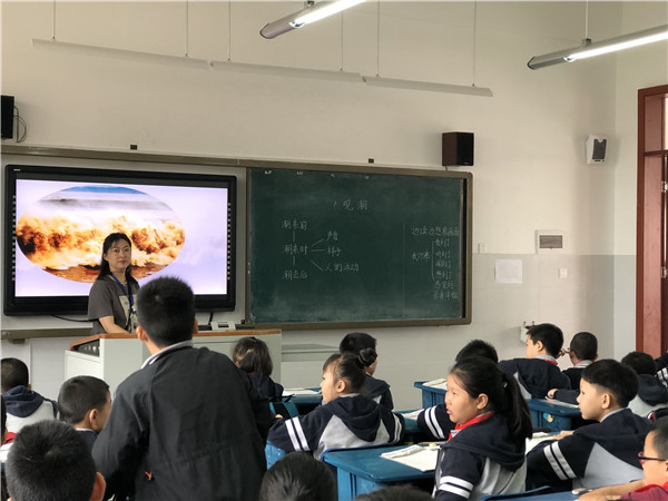 四年级的陈璇老师带来了一堂精彩的阅读课《观潮》。陈璇老师潜心解读教材,精心设计教学环节,利用多媒体课件给孩子们带来视觉上的冲击。孩子们跟随陈璇老师品读语言文字,调动多种感官,想象画面,领略钱塘江大潮的雄伟壮观。朗朗的读书声、精彩的课堂发言给听课老师留下了深刻印象。