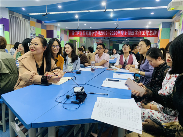 会议最后,周校长进行总结发言,她提到,学校有许多有着丰富经验的老师,老师们可以随时去“串门”取经。各科老师应该打好配合,利用好碎片化的时间,采用更多的好办法提高学生在校学习效率,同时作为光华实小人,责任在心间,只要有“咬定青山不放松”的精神,就没有克服不了的困难。