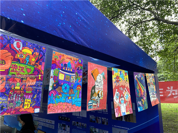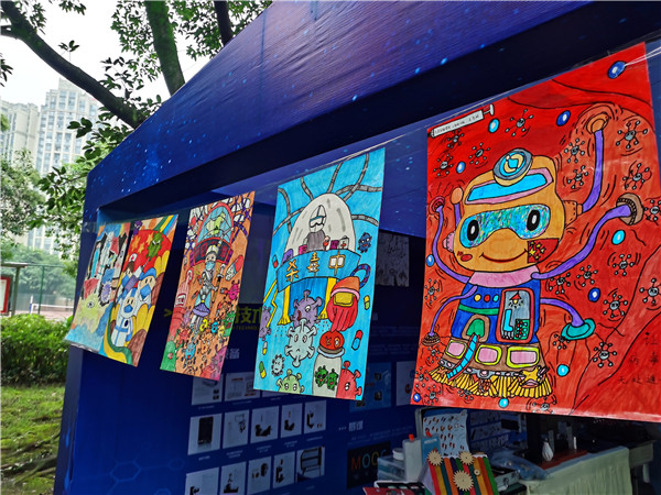本次活动中,光华实小设置了科学成果展示专场与信息技术人工智能专场。展区内,悬挂着以“共克时艰,一起战疫”为主题的科幻画。实粒少年们利用自己的画笔与想象,表达出对宇宙万物、未来人类社会生活、科学技术的遐想以及对医护人员的崇敬。
