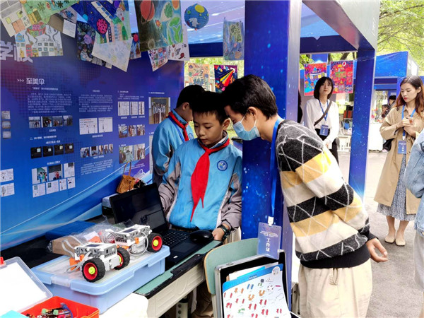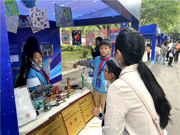 越来越多的参观者聚集、停留,带着好奇的目光凝听着光华小导游们的细致解说。光华实粒少年们用自己的讲解、演示展现了自己的精彩,获得了参观者的高度称赞!