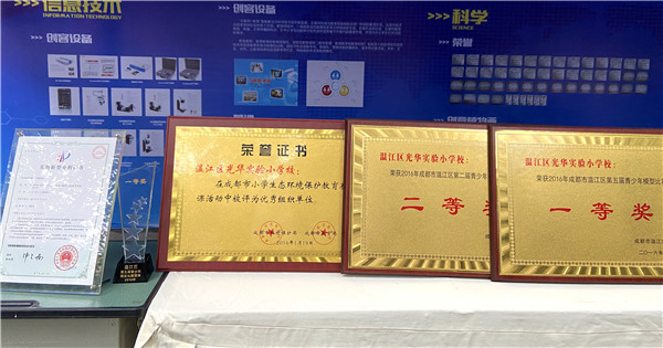 成都市领导参观了学校一系列的作品和证书奖状后,对学校未来的科技之路发展方向提供了建议性的意见。光华实小的实粒少年们用他们的行动,践行着智享未来的主题。