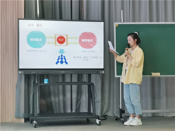 李婷老师说课的课题是《什么是周长》,李老师在教学过程中让学生体会、领悟到底什么是周长?哪些东西有周长?对教材把握比较准,重难点突出,以学生为主体。
