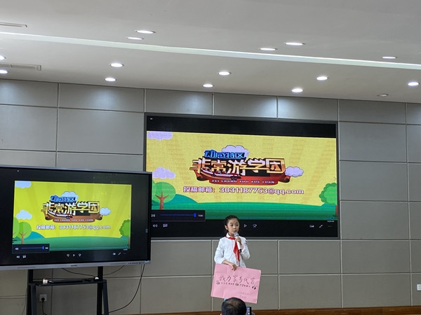 央视少儿频道导演马娅斌为在场的孩子们介绍此次活动的意义。他讲道:“本次活动以‘幸福诗篇,从家乡出发’为主题,让同学们发现校园之美、发现家乡之美,从而发自内心的热爱家乡,成为家乡的‘小小代言人’”!