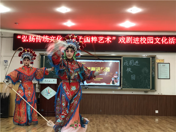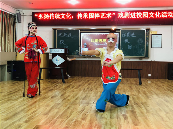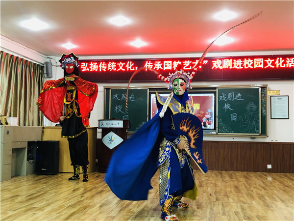 学校把以川剧为代表的四川戏曲引进课堂教学和艺术实践活动,让孩子们学会聆听和欣赏戏曲,开展戏曲知识普及活动,传承中华文明,发展天府文化。