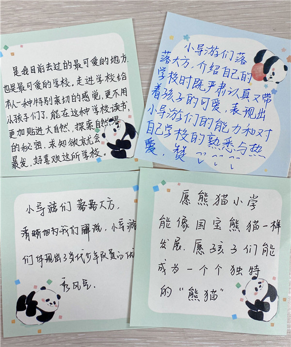 最后,培训团的成员在熊猫便签上留下了对熊猫路小学的祝福。