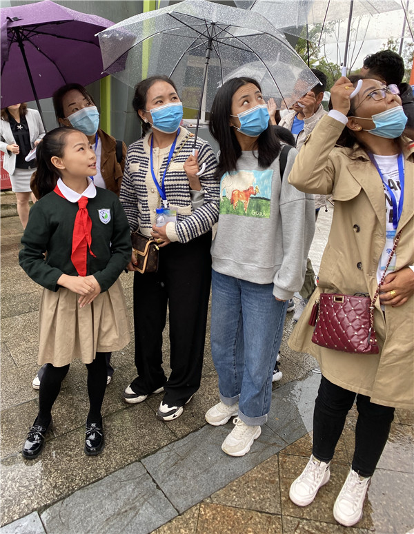 客人们笑容满面,对小导游们赞不绝口,争相和他们合影。