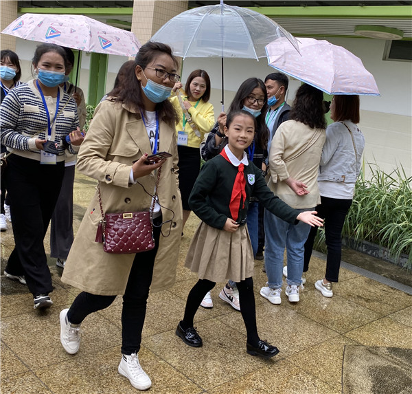 2020年9月26日,西藏地区思政课骨干教师培训班到访成都市熊猫路小学,就德育体系与熊猫路小学进行了深度交流。该校小导游热情地接待了培训班成员。