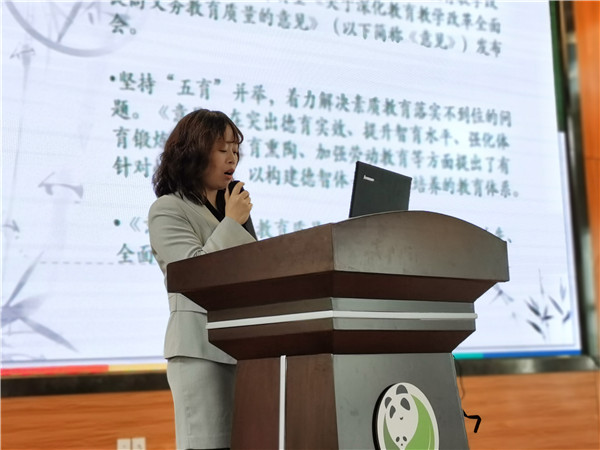 邱校长对培训班成员致以热烈的欢迎,与大家分享了“熊猫·功夫”德育体系,介绍了学校自然教育的理念和宗旨。