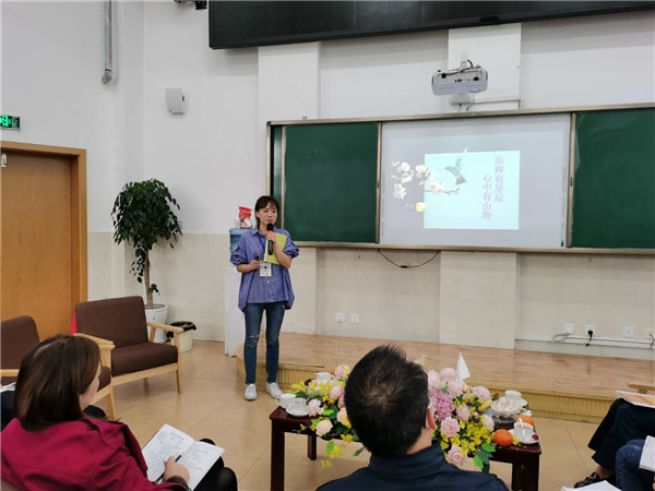 王霞老师为大家分享了自己阅读《玫瑰与教育》的感悟。教育是一种等待的艺术,需要有滴水穿石的耐性,“莫疑春归无去处,静待花开总有时”。走进玫瑰园映入眼帘的绚烂花儿和含苞待放的花骨朵会让人们生出独具特色的教学风采。