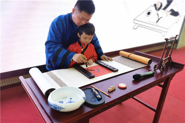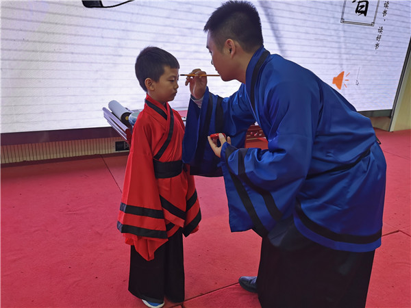“开笔礼”是中国传统文化中对少儿开始识字习礼的一种启蒙教育。在古代,学童会在“开笔礼”,即开学的第一天早早起床来到学堂,由启蒙老师讲授人生最基本最简单的道理,并教读书、写字,然后参拜孔子像,才可以入学读书,这一仪式俗称“破蒙”。