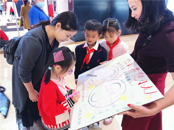 从胆怯害羞不敢上前,到礼貌招呼主动推广;从声如细丝语焉不详,到自信满满大声宣讲;从遭到拒绝偃旗息鼓,到相互鼓劲越战越勇……这群只有7、8岁的孩子践行着“E城”小公民的责任,传递正能量,弘扬雅文化。