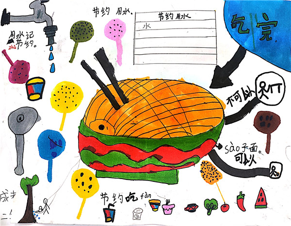 班会课上,班主任深入浅出地讲解了勤俭节约对于个人、家庭,乃至国家的重要性;午休时间,美术老师引导孩子将所知所感绘成一幅幅活泼生动的宣传海报;回到家后,一张张废弃的纸张、纸板,又“重获新生”,空白的背面成了宣传勤俭节约的“战场”……